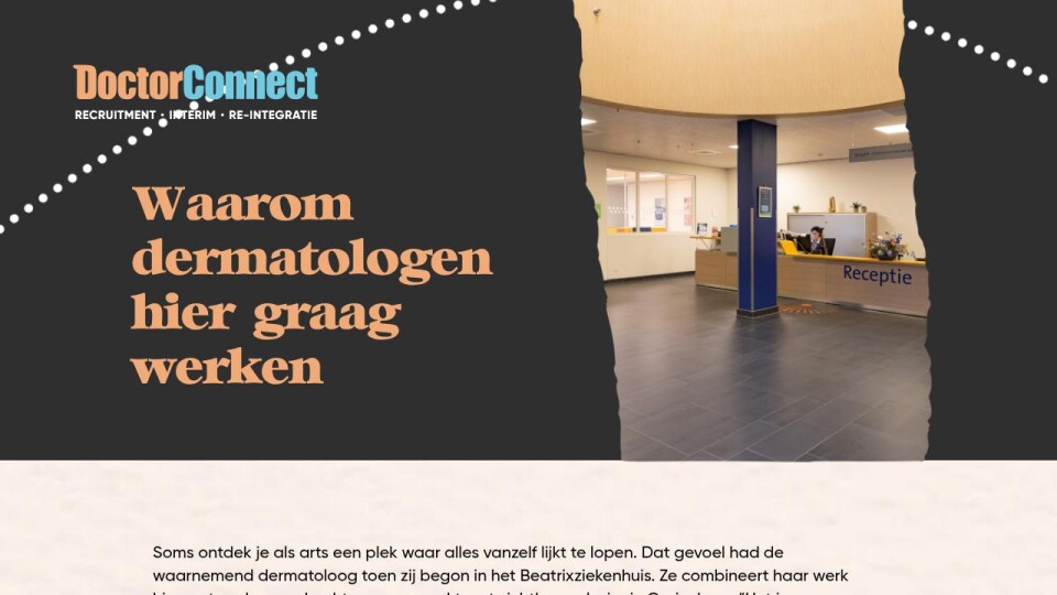 Er ligt voor de twee nieuwe dermatologen een mooie kans. Juist doordat de vakgroep opnieuw wordt opgebouwd, is er ruimte om samen richting te geven aan de toekomst van de afdeling. “Als je hier met twee mensen begint, kun je echt samen de kar trekken. Dan kun je ideeën uitwerken en de afdeling verder ontwikkelen.”