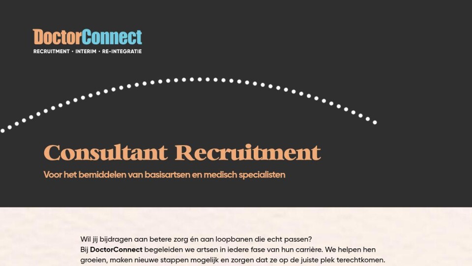 Bij DoctorConnect begeleiden we artsen in iedere fase van hun carrière. We helpen hen groeien, maken nieuwe stappen mogelijk en zorgen dat ze op de juiste plek terechtkomen. Tegelijk ondersteunen we zorgorganisaties met recruitment, interimoplossingen, coaching en re-integratie. Om onze impact verder te vergroten, zoeken wij een Consultant Recruitment.